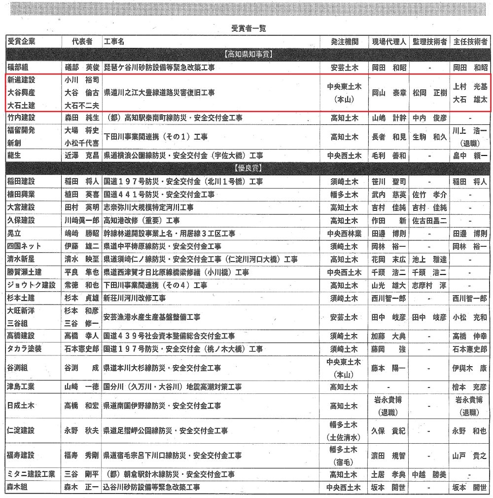 《令和5年度 高知県優良建設工事施工者表彰の受賞者工事一覧》