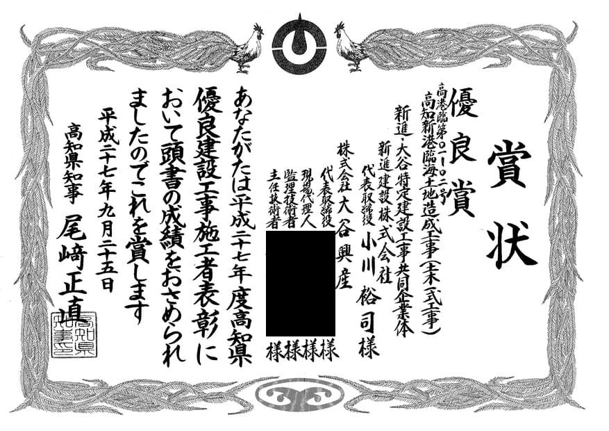 平成27年度 高知県優良建設工事施工者表彰を受賞しました