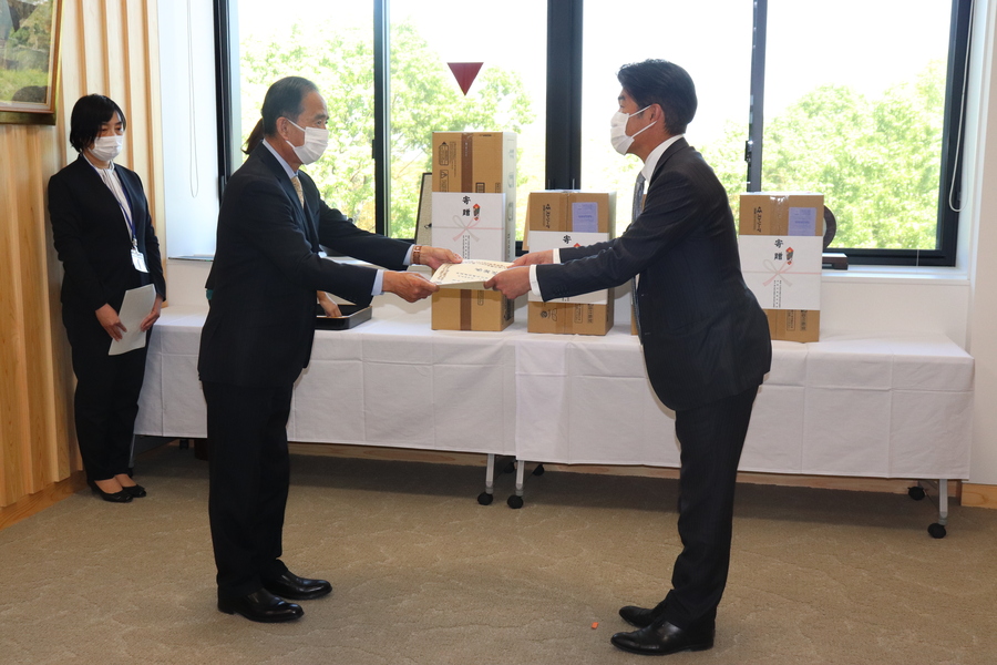 令和5年4月28日に「高知市上下水道局本庁舎建築工事」施工業者一同より落成記念品を寄贈させていただきました。