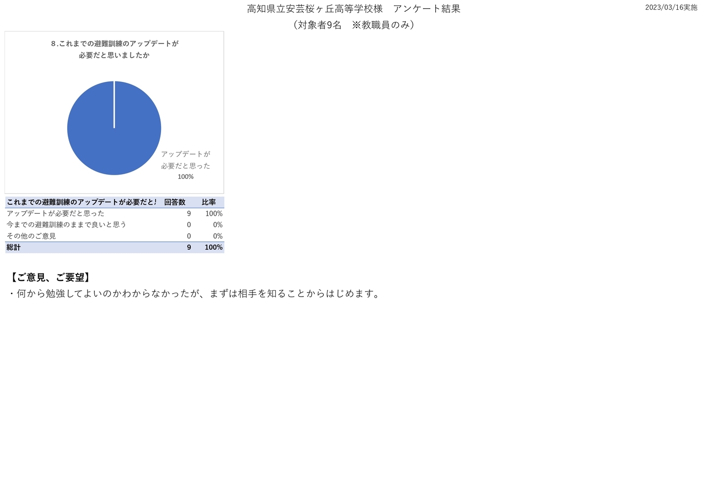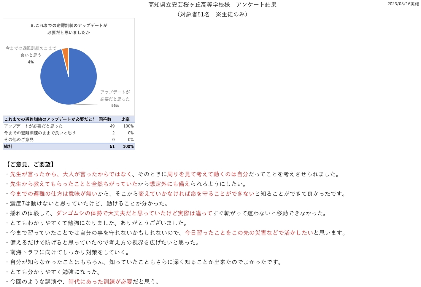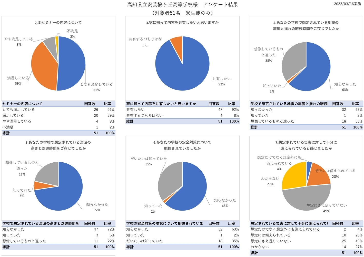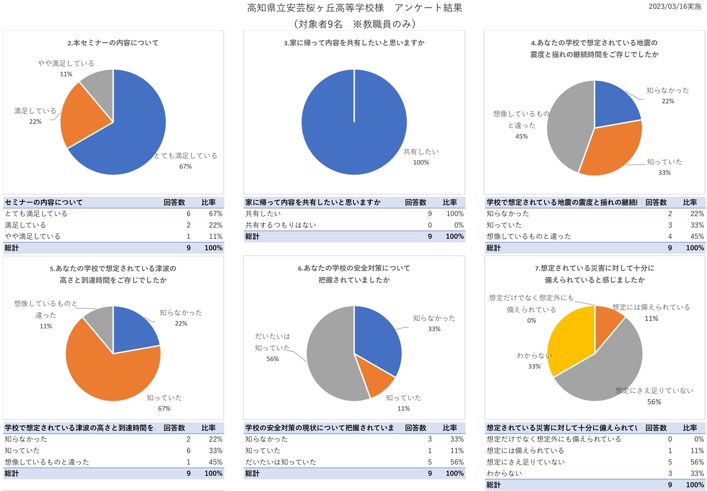 参加いただきました皆様のアンケート結果を参考に今後の出前授業にも生かしていきたいと思います。