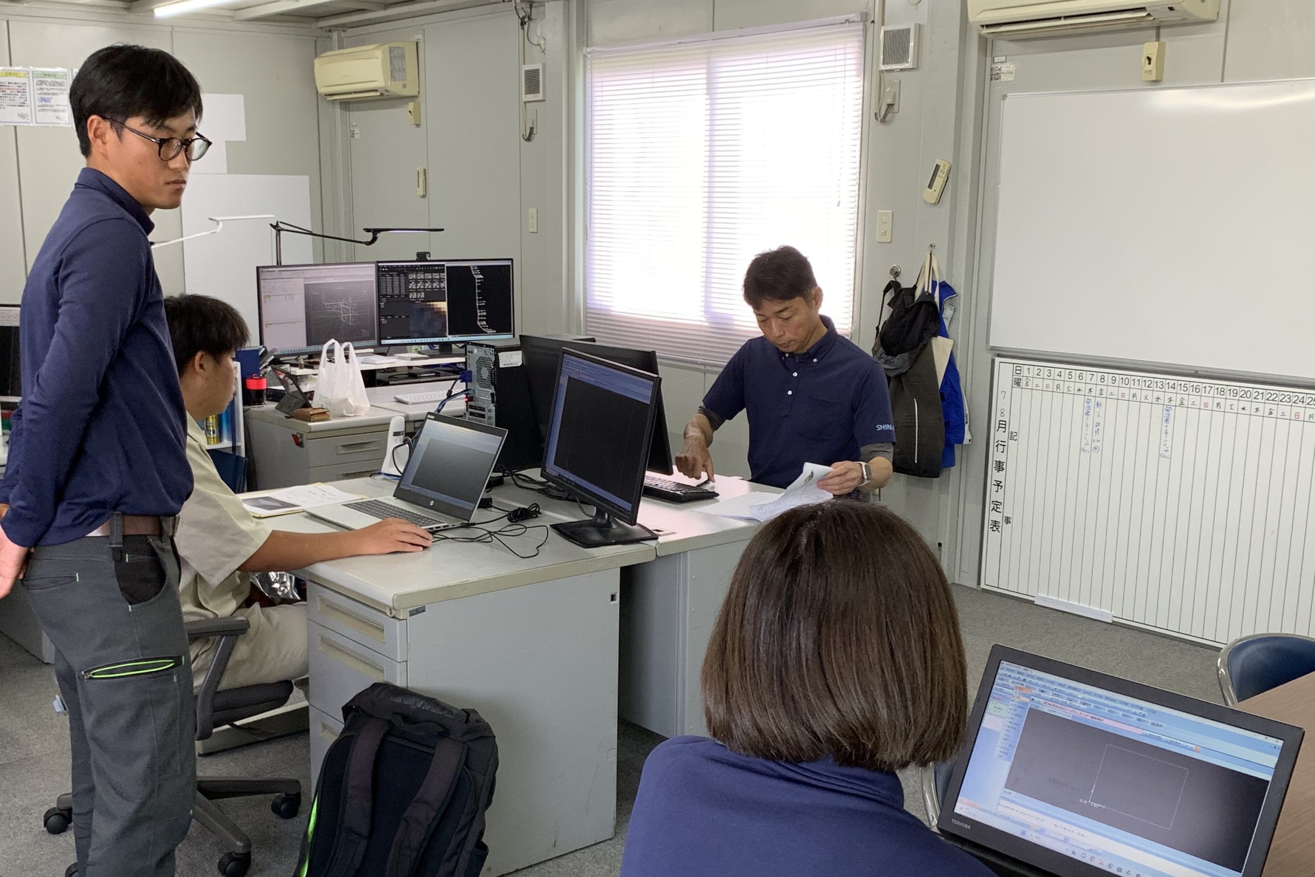 当社では、学校では体験できない工事現場の雰囲気や新技術(ICT)に実際に触れていただき、建設業の魅力を発信することを目的にインターンシップを開催しております。
